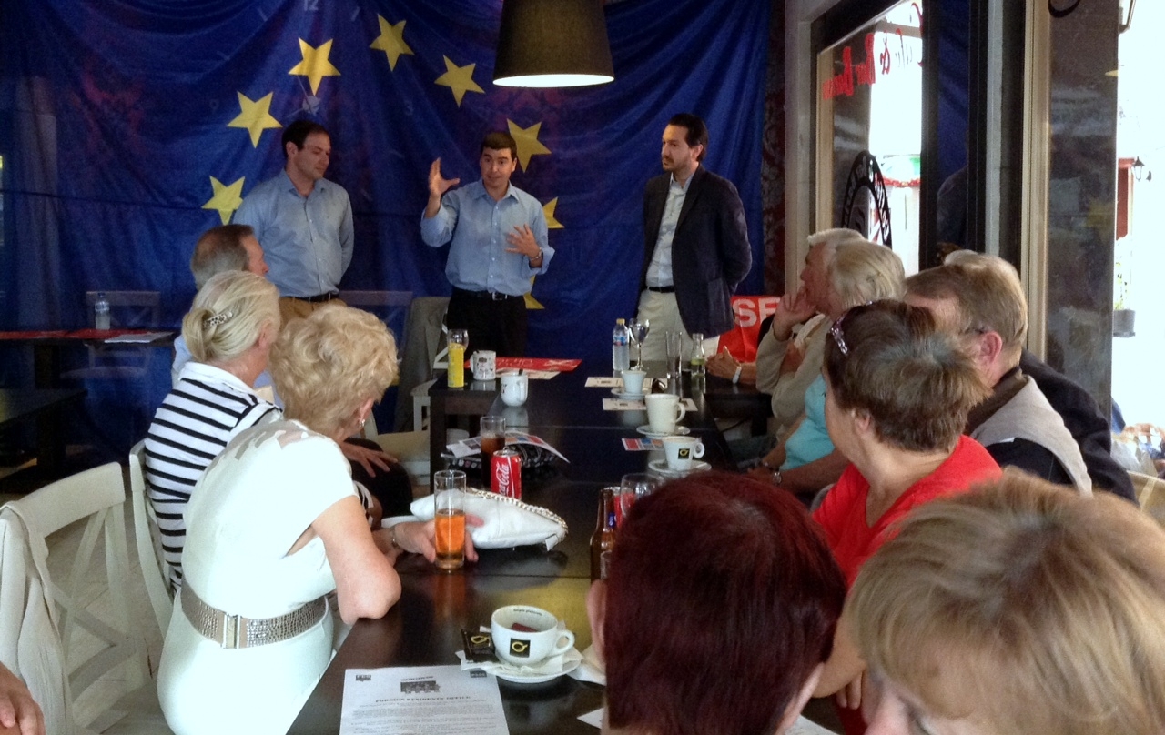 El Secretario General del PSOE de Fuengirola, Javier García León, junto al coordinador de “Foreign Residents´Office”, Pavlo Vega ha presentado en Los Boliches este nuevo punto de encuentro de los extranjeros residentes en Fuengirola, contando como “padrino” en su presentación al candidato al Parlamento Europeo José Manuel Domínguez.